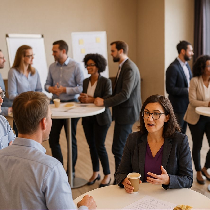 Im HR CafĂ© wird es lebendig: In kleinen Gruppen diskutieren Teilnehmende an wechselnden Thementischen zentrale Fragen welche die HR Abteilungen der Energieunternehmen aktuell beschĂ€ftigen â moderiert von Expert:innen aus der Branche. Statt Frontalvortrag steht der offene Dialog im Fokus: persönlich, praxisnah und beweglich. Mit Kaffee in der Hand, spannenden GesprĂ€chen im Ohr und Raum fĂŒr echte Impulse.